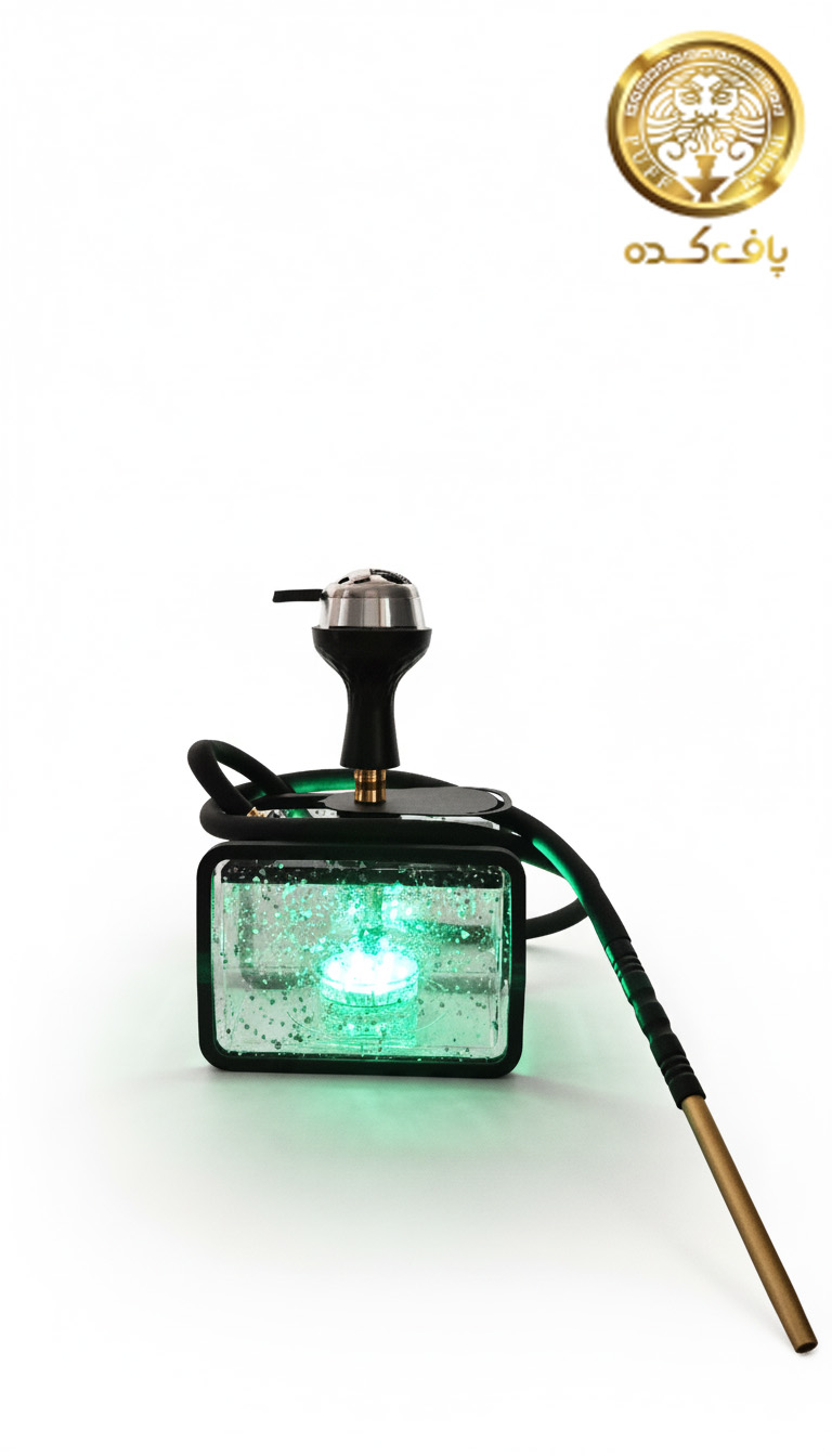 قلیان باکسی فوق العاده پر طرفدار مخصوص استفاده بر روی میز پذیرایی دارای چراغ جهت نورپردازی در شب شلنگ سیلیکون + دسته شلنگ اصلی سری سیلیکون داخل شیشه + هات سوز خارجی