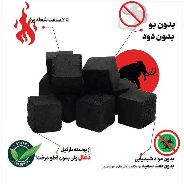 این ذغال فشرده نه‌تنها کیفیت شعله و حرارت را تضمین می‌کند، بلکه به‌دلیل عدم ایجاد خاکستر زیاد، استفاده از آن بسیار آسان و تمیز است. همین موضوع باعث شده که بین مصرف‌کنندگان حرفه‌ای قلیان و علاقه‌مندان به کباب محبوبیت زیادی پیدا کند.