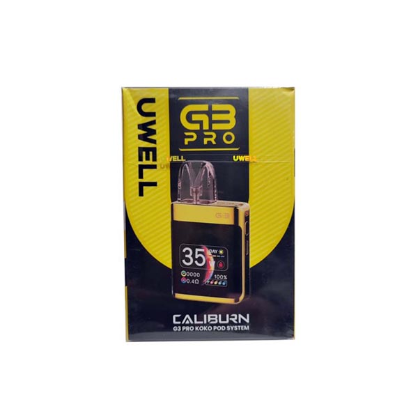 پاد سیستم کالیبرن جی ۳ پرو کوکو یوول CALIBURN G3 Pro KOKO یکی از جدیدترین محصولات برند یوول است که با طراحی مدرن، صفحه‌نمایش ۱.۸ اینچی و باتری قدرتمند ۱۲۵۰ میلی‌آمپر ساعت عرضه می‌شود. این دستگاه با توان خروجی تا ۳۵ وات و قابلیت پشتیبانی از کویل‌های مش، تجربه‌ای کامل از طعم و بخار ارائه می‌دهد. ترکیب طراحی ارگونومیک و امکانات پیشرفته باعث شده این مدل برای کاربران حرفه‌ای و علاقه‌مندان به ویپ یک انتخاب ایده‌آل باشد.